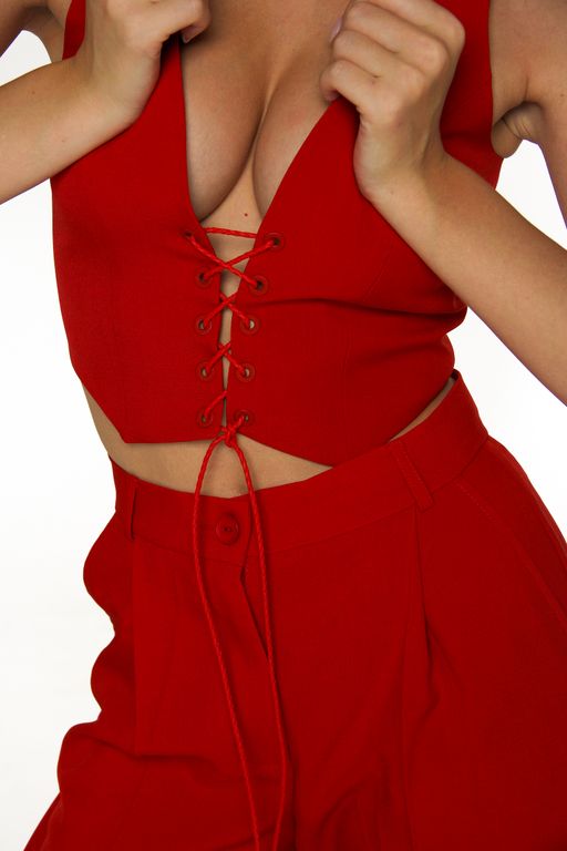 ЖИЛЕТ СО ШНУРОВКОЙ НА ГРУДИ. ЧАРУЮЩИЙ КРАСНЫЙ.